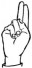 На ћирилици написано НАДЈА ДАНГУБИЋ састоји се из 13 слова [?]. Исписано ћириличном једноручном азбуком за глувонеме: